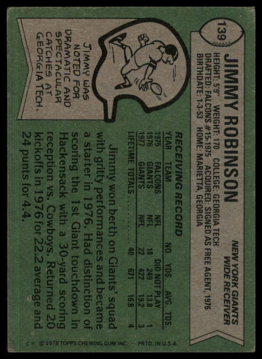 1978 Topps Jim Robinson #139 Rookie New York Giants Football Card NFL Sports