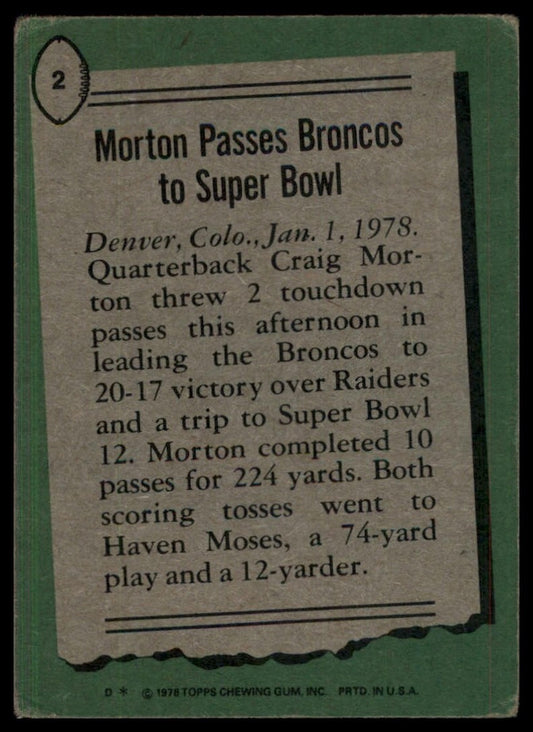 1978 Topps Craig Morton #2 Denver Broncos Football Card NFL Sports