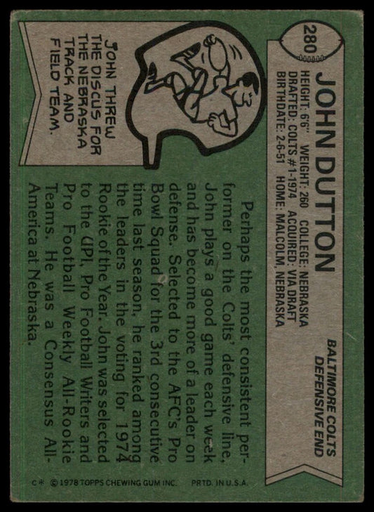 1978 Topps John Dutton #280 Indianapolis Colts Football Card NFL Sports