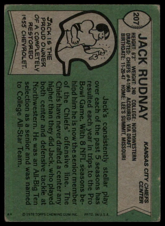 1978 Topps Jack Rudnay #207 Kansas City Chiefs Football Card NFL Sports