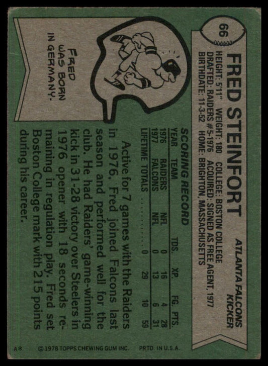 1978 Topps Fred Steinfort #66 Rookie Atlanta Falcons Football Card NFL Sports