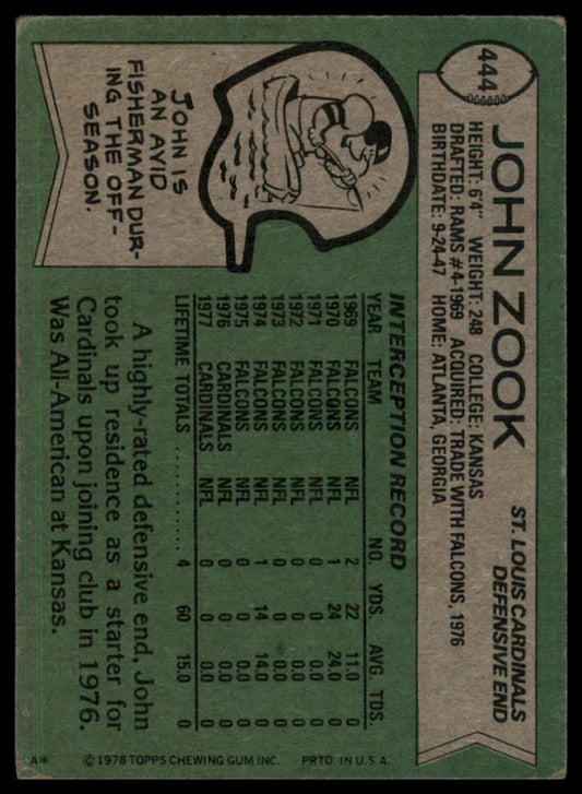 1978 Topps John Zook #444 Arizona Cardinals Football Card NFL Sports