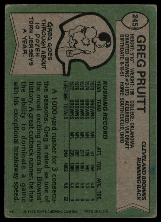 1978 Topps Greg Pruitt #245 Cleveland Browns Football Card NFL Sports