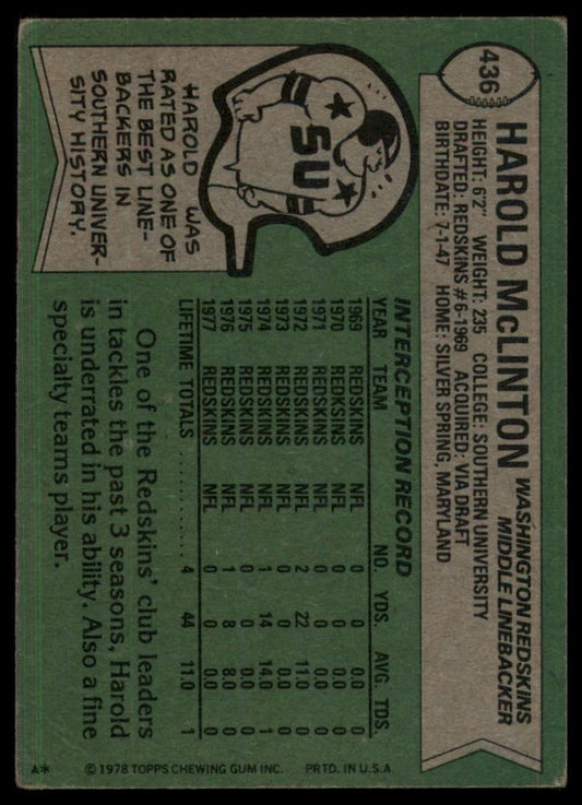 1978 Topps Harold McLinton #436 Washington Redskins Football Card NFL Sports