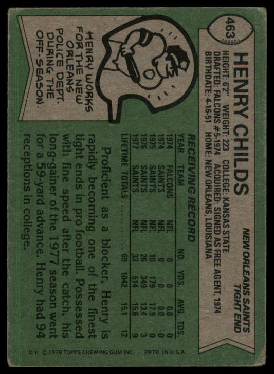1978 Topps Henry Childs #463 New Orleans Saints Football Card NFL Sports