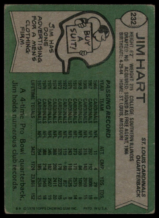 1978 Topps Jim Hart #232 St Louis Cardinals Football Card NFL Sports