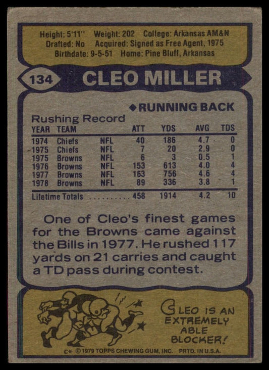 1979 Topps Cleo Miller #134 Cleveland Browns Football Card NFL Sports