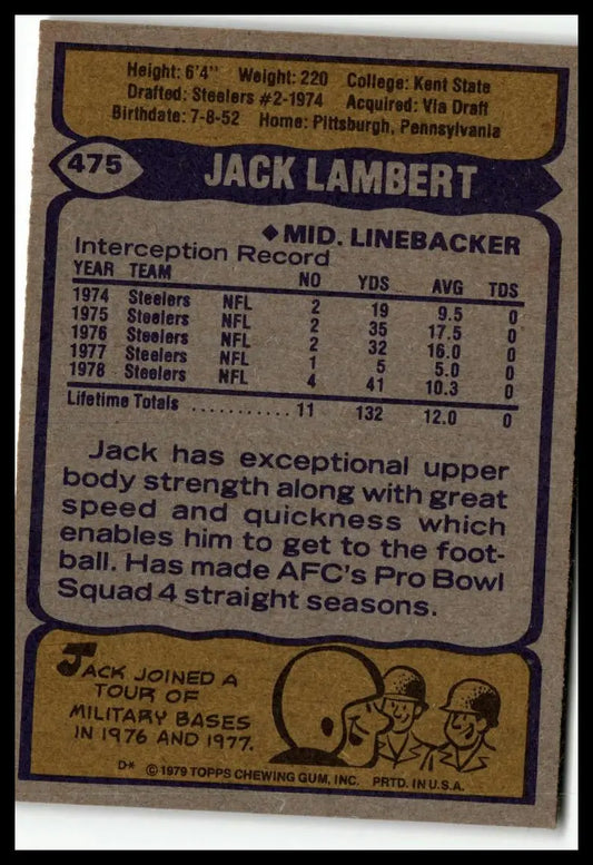 1979 Topps #475 Jack Lambert Cream Colored Back