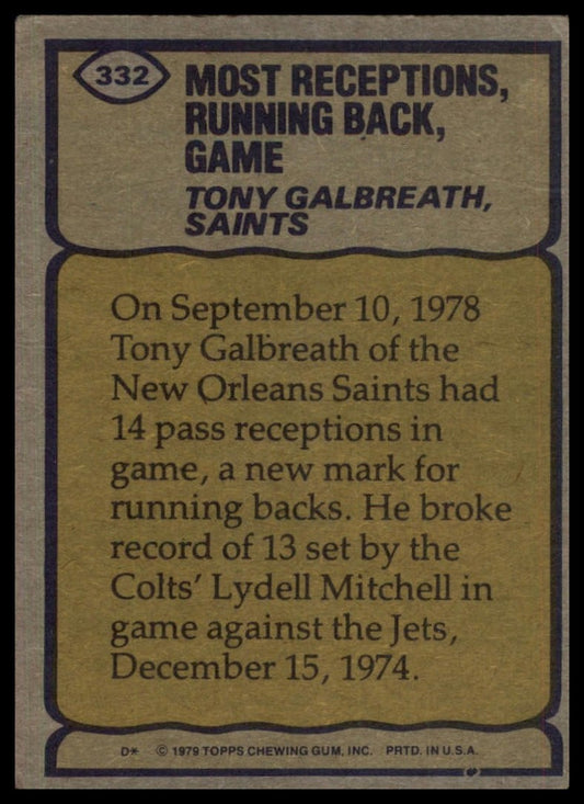 1979 Topps Tony Galbreath #332 New Orleans Saints Football Card NFL Sports