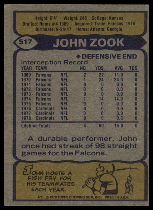 1979 Topps John Zook #517 St Louis Cardinals Football Card NFL Sports