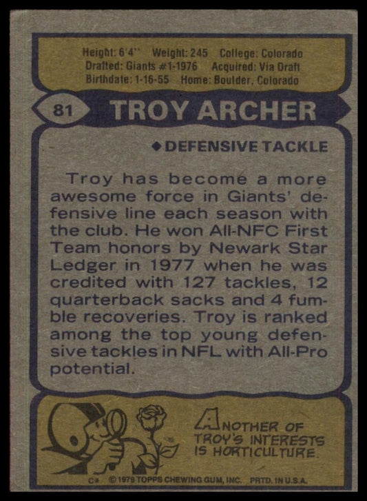 1979 Topps Troy Archer #81 New York Giants Football Card NFL Sports