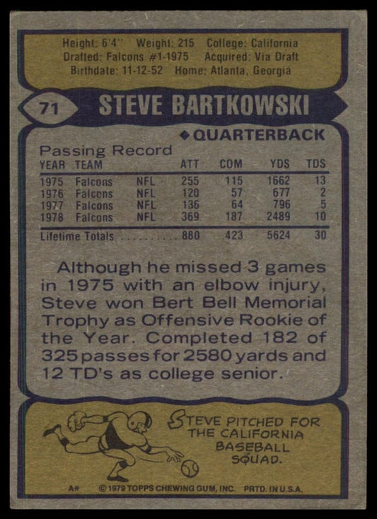 1979 Topps Steve Bartkowski #71 Atlanta Falcons Football Card NFL Sports