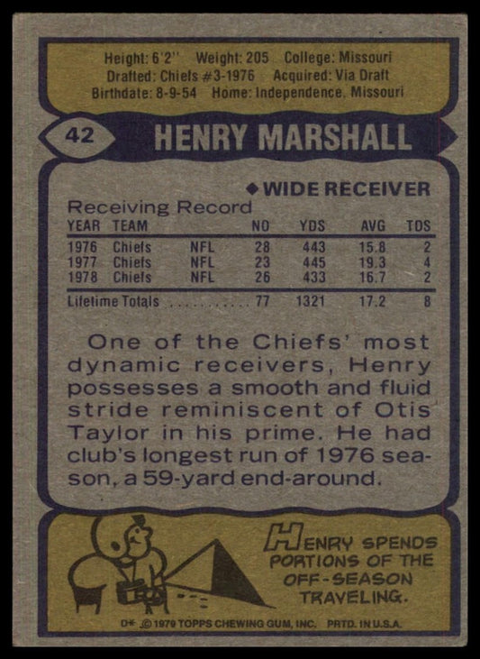 1979 Topps Henry Marshall #42 Kansas City Chiefs Football Card NFL Sports