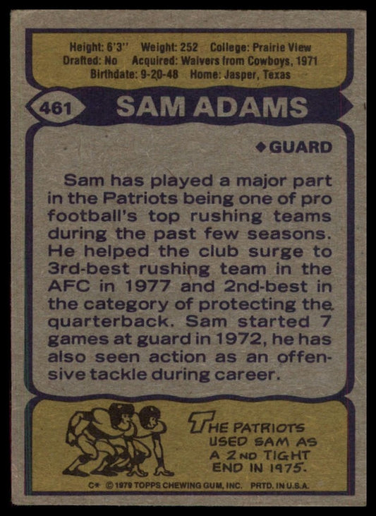1979 Topps Sam Adams #461 New England Patriots Football Card NFL Sports
