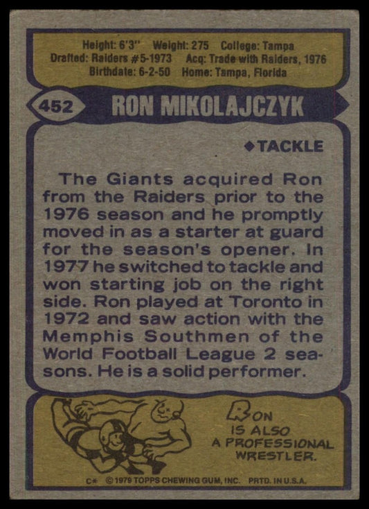 1979 Topps Ron Mikolajczyk #452 Rookie New York Giants Football Card NFL Sports