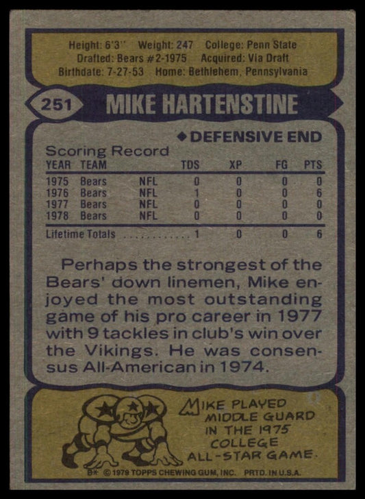 1979 Topps Mike Hartenstine #251 Chicago Bears Football Card NFL Sports