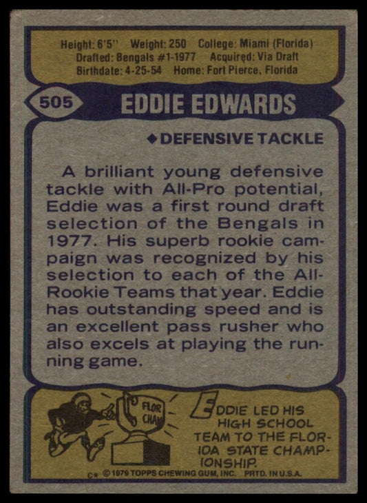 1979 Topps Eddie Edwards #505 Cincinnati Bengals Football Card NFL Sports