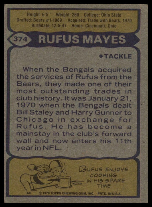 1979 Topps Rufus Mayes #374 Cincinnati Bengals Football Card NFL Sports