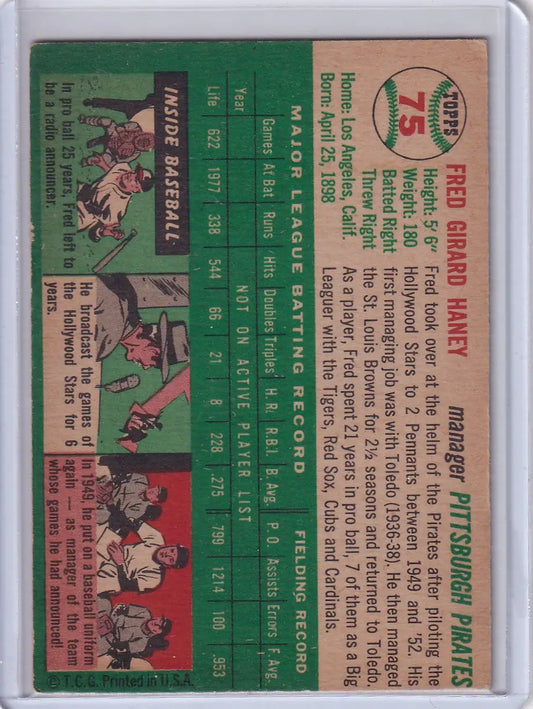1954 Topps #75 Fred Haney - Pittsburgh Pirates