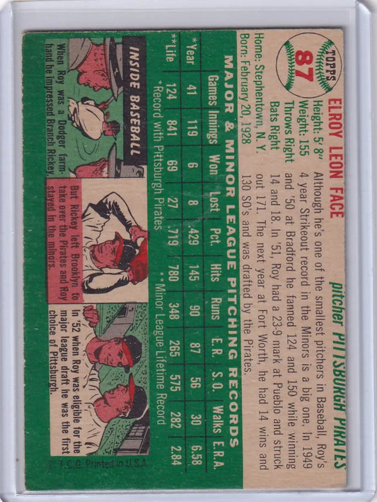 1954 Topps #87 Roy Face - Pittsburgh Pirates