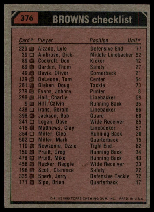 1980 Topps Team Leaders Mike Pruitt Jerry Sherk Thom Darden #376 Browns Football