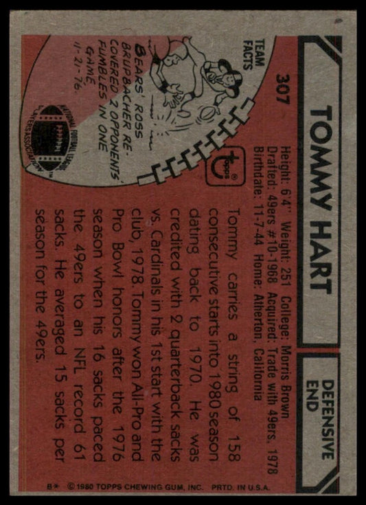1980 Topps Tommy Hart #307 Chicago Bears Football Card NFL Sports