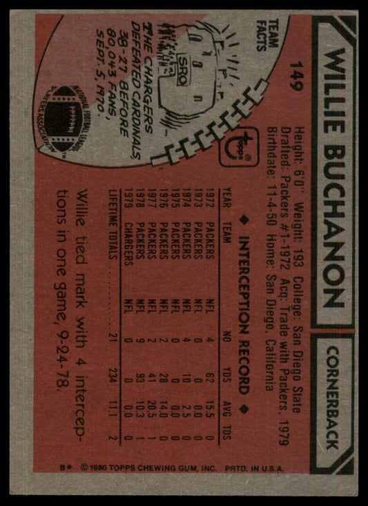 1980 Topps Willie Buchanon #149 San Diego Chargers Football Card NFL Sports