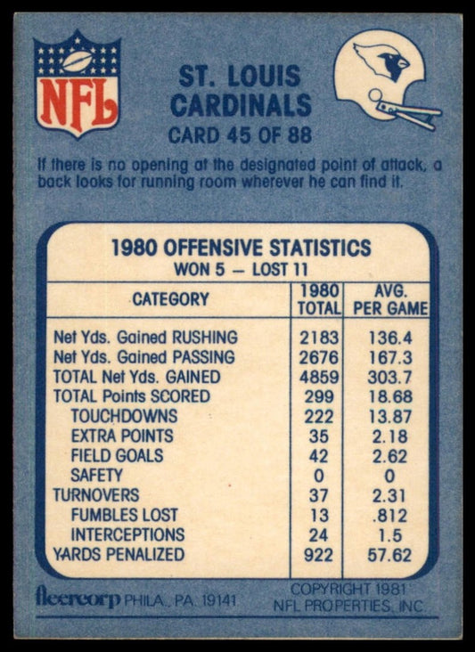 1981 Fleer Teams in Action St Louis Cardinals #45 Football Card NFL Sports