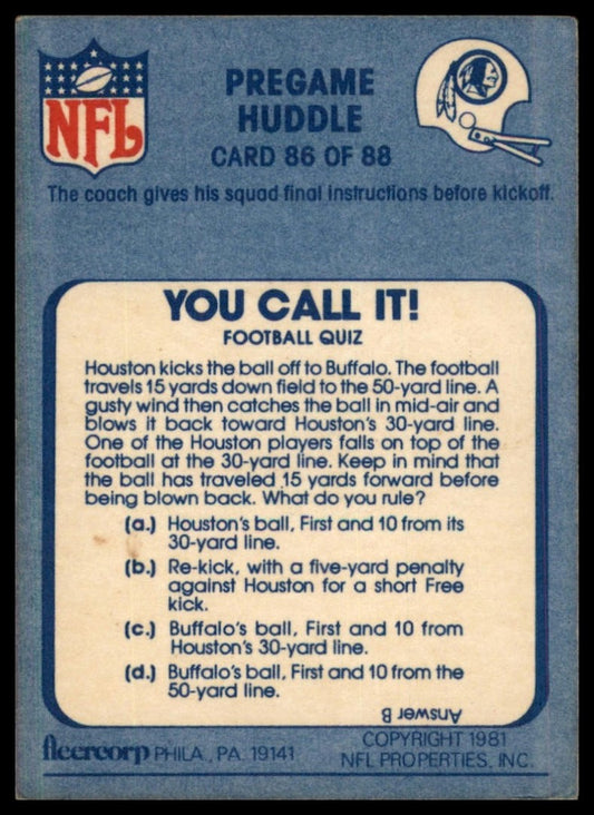 1981 Fleer Teams in Action Washington Redskins #86 Football Card NFL Sports