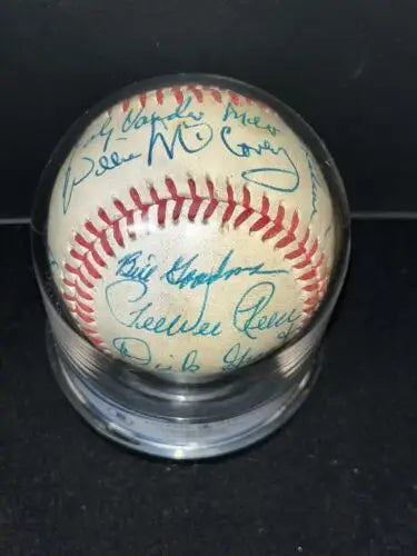 1982 Cracker Jack Old Timer Game Signed Baseball BAS DiMaggio Brock Kaline Auto