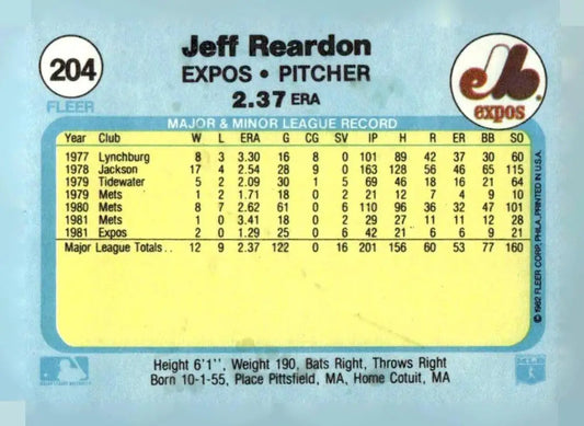 1982 Fleer #184 Ray Burris Montreal Expos Baseball Cards ID:52300