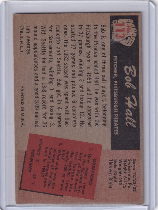1955 Bowman Baseball #113 Bob Hall - Pittsburgh Pirates RC