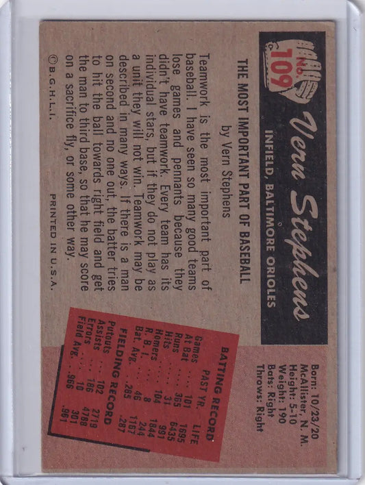 1955 Bowman Baseball #109 Vern Stephens - Baltimore Orioles