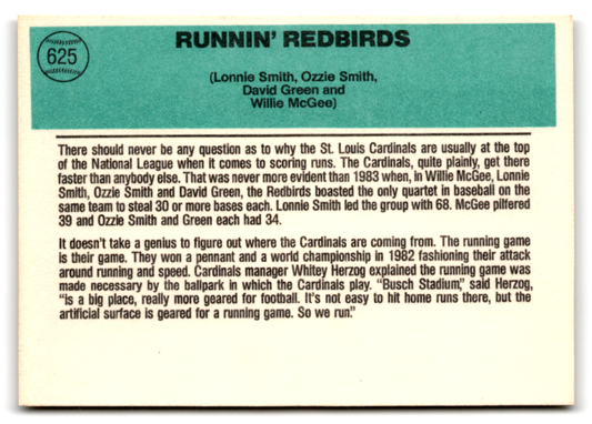 1984 Donruss #625 Lonnie Smith/Ozzie Smith/David Green/Willie McGee NM- ID:79568