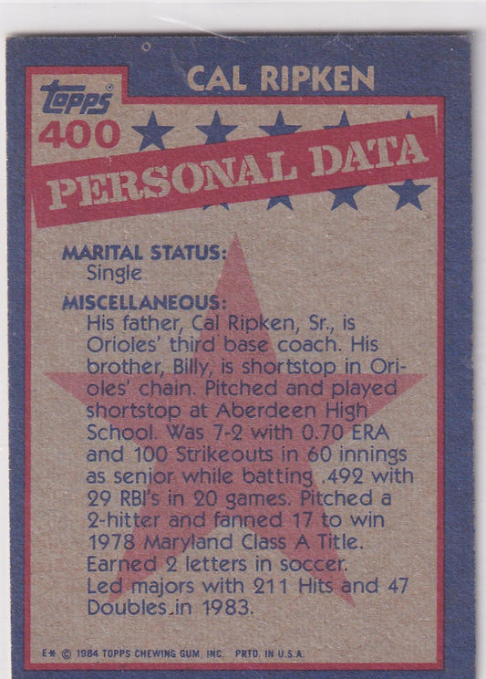 1984 TOPPS #400 CAL RIPKEN ALL STAR- BALTIMORE ORIOLES