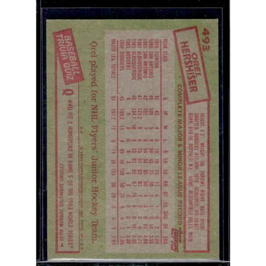 1985 Topps #493 Orel Hershiser Los Angeles Dodgers EX Excellent