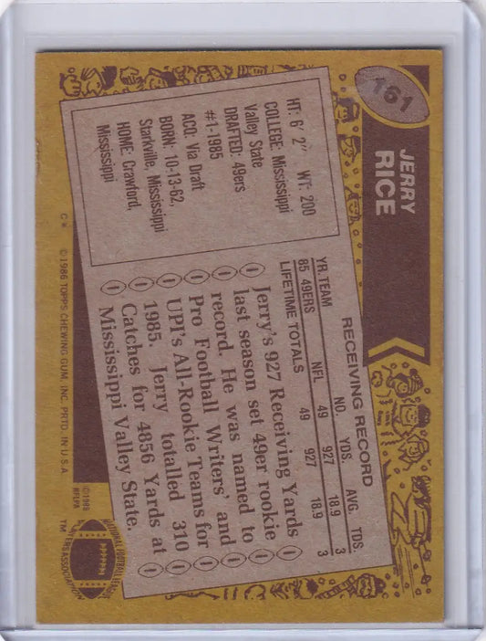 1986 Topps Football #161 Jerry Rice RC - San Francisco 49ers