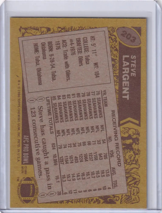 1986 Topps Football #203 Steve Largent - Seattle Seahawks