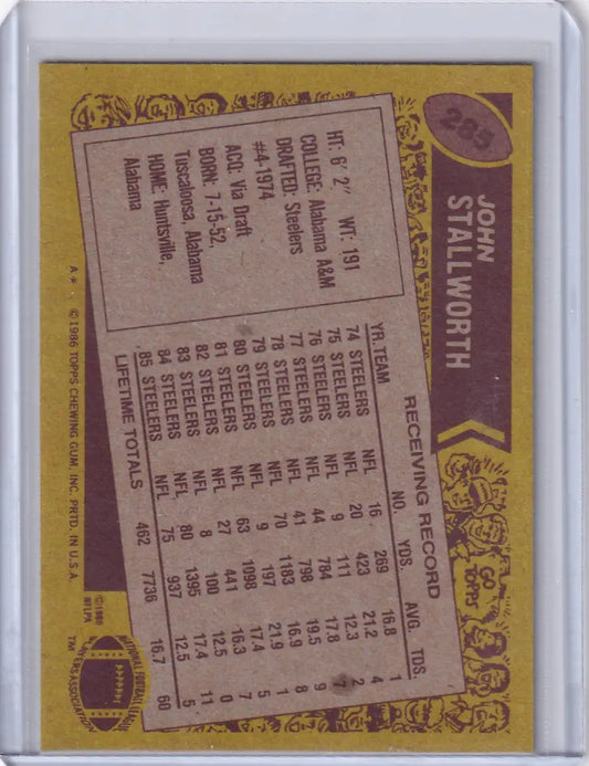 1986 Topps Football #285 John Stallworth - Pittsbugh Steelers