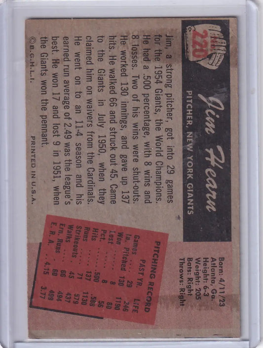 1955 Bowman Baseball #220 Jim Hearn - New York Giants