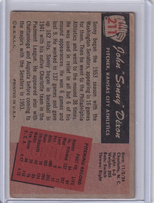 1955 Bowman Baseball #211 Sonny Dixon - Kansas City Athletics RC
