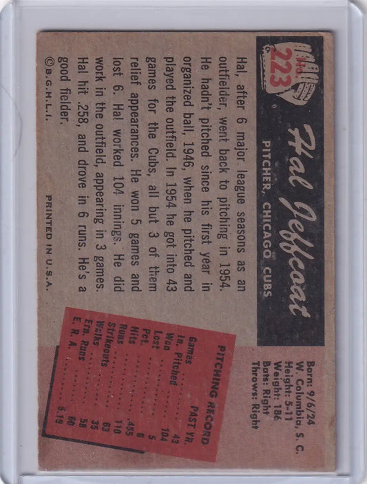 1955 Bowman Baseball #223 Hal Jeffcoat - Chicago Cubs