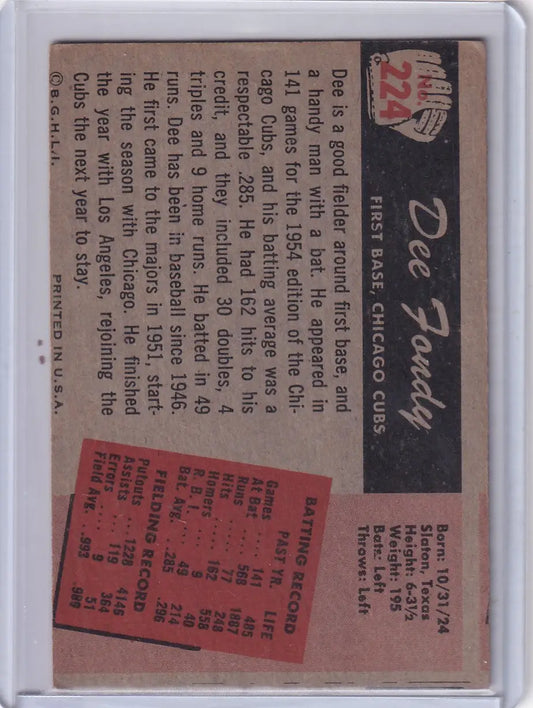 1955 Bowman Baseball #224 Dee Fondy - Chicago Cubs