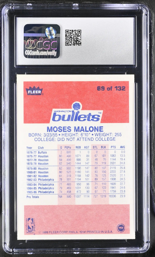 1986-87 Fleer Basketball #69 Moses Malone CGC 8.5 NM/Mint+