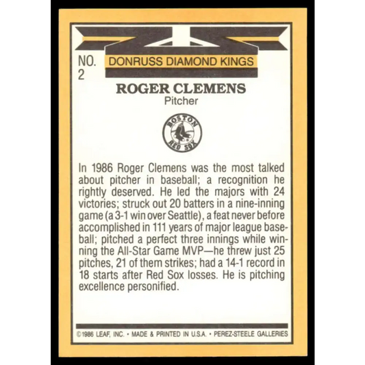 1987 Donruss #2 Roger Clemens EX/NM Boston Red Sox Baseball Card