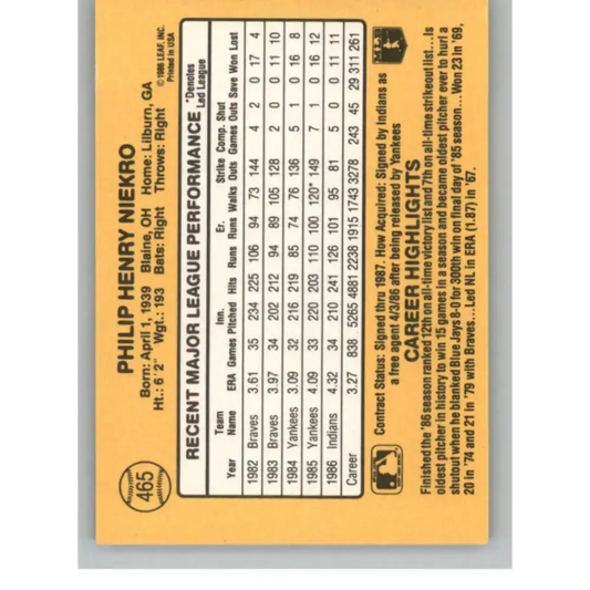 1987 Donruss #465 Phil Niekro EX Cleveland Indians Baseball Card