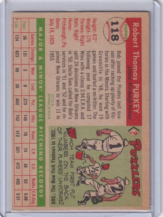 1955 Topps #118 Bob Purkey - Pittsburgh Pirates