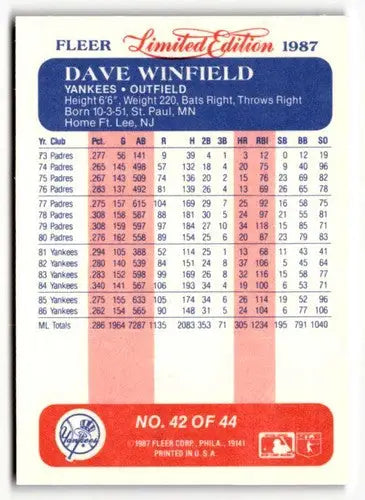 1987 Fleer Limited Edition #42 Dave Winfield NM ID:48812