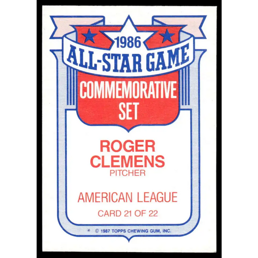 1987 Topps #21 Roger Clemens EX/NM Boston Red Sox Baseball Card