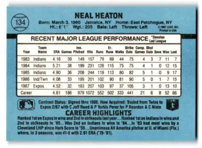 1988 Donruss #134b Neal Heaton